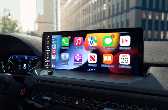 • myHonda Connect: A ponte digital entre o aplicativo e o Accord Híbrido permite executar controles remotos, obter informações essenciais do veículo e estabelecer uma relação dinâmica com o carro.