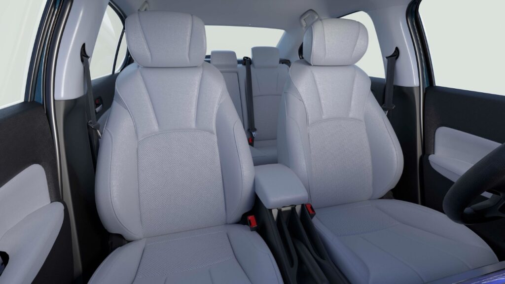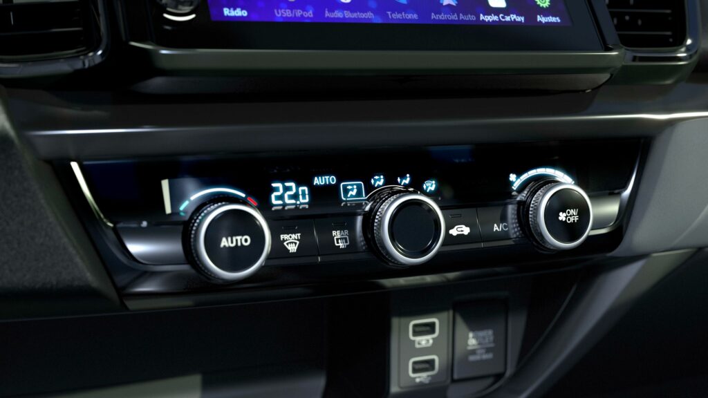 Os bancos do New City Sedan foram projetados com estrutura estabilizadora para reduzir a fadiga em viagens longas, enquanto o ar-condicionado digital automático facilita o ajuste da temperatura.