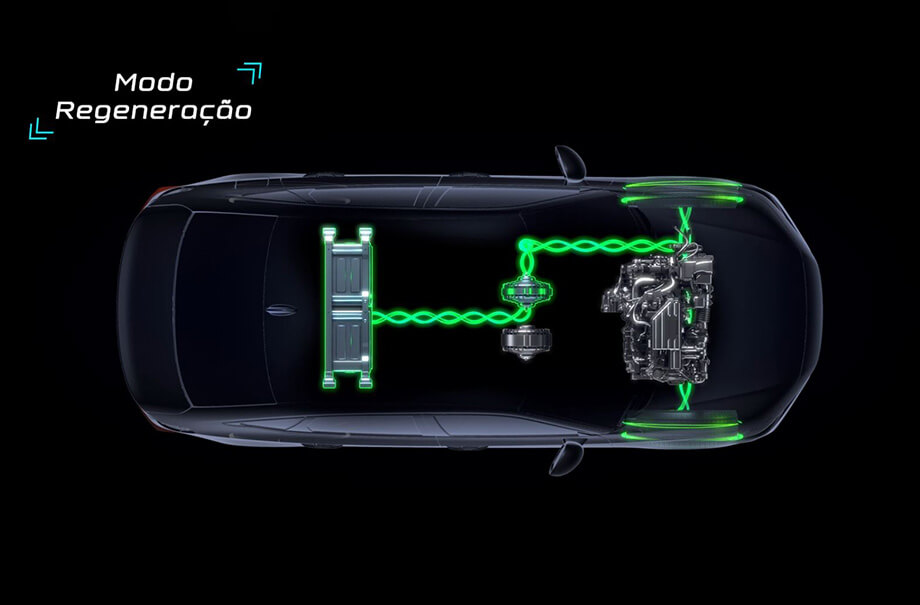 O sistema de propulsão híbrido possui um motor elétrico de alta potência — 184 cv e 32,1 kgfm — que atua junto ao motor a gasolina de 143 cv alimentado por injeção direta.