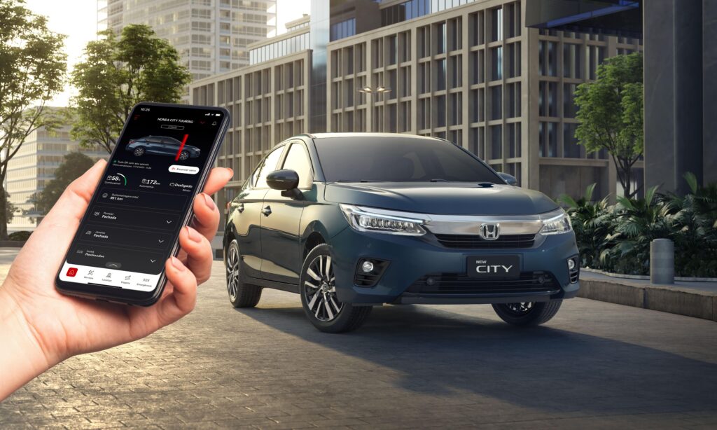 Um grande destaque da nova linha City 2024 é a introdução do myHonda Connect, sistema de conectividade, agora disponível na versão EXL do sedã e do hatchback. Anteriormente, essa funcionalidade era exclusiva da versão de topo, Touring.