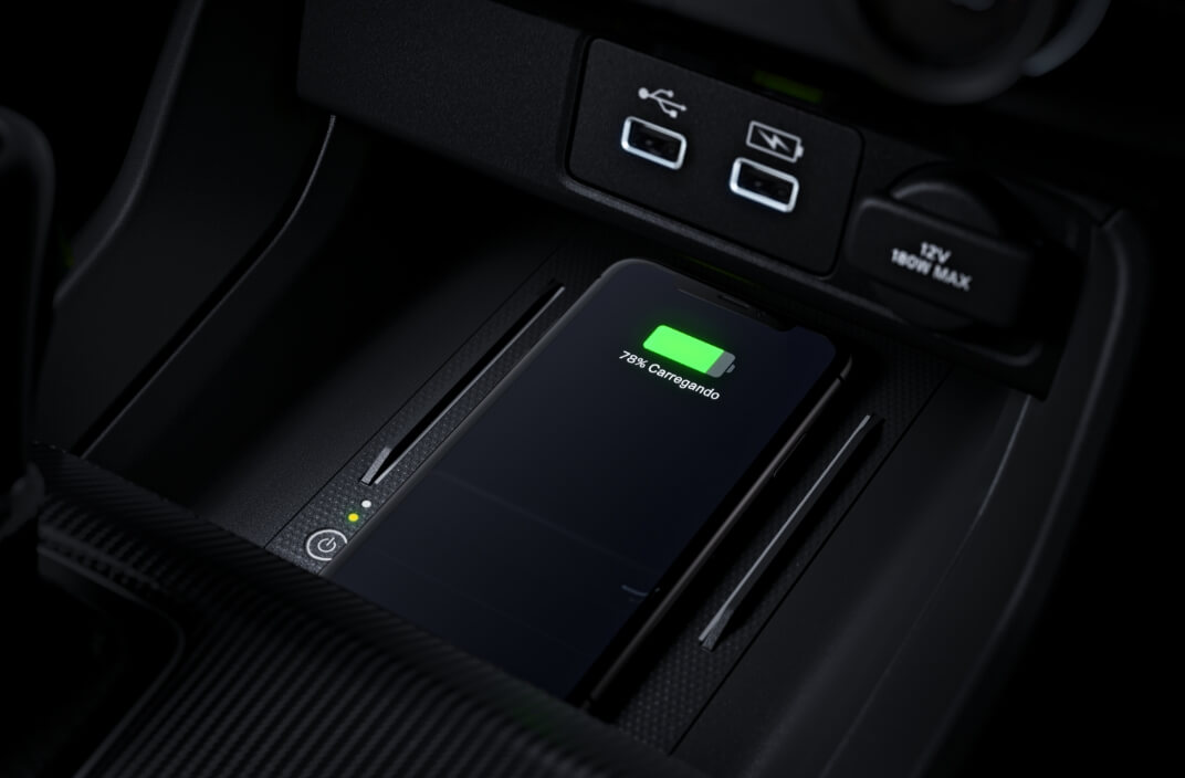 O carregador sem fio garante que seu smartphone não fique sem energia. Basta colocar o telefone na base de carregamento por indução para um carregamento sem o incômodo dos fios.